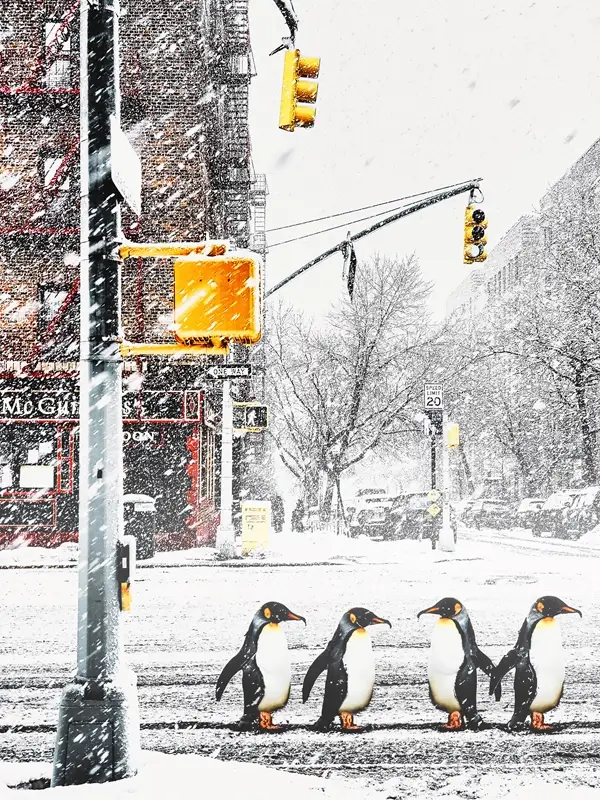 4 Pinguïns in New York posters & art prints door Fabian Kimmel – Premium Poster – 50×70 Soldes