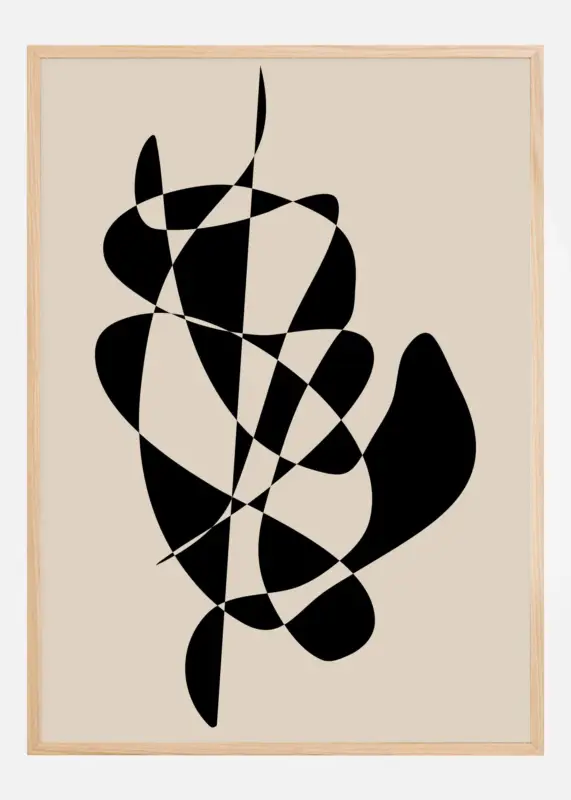 Deze poster is een eerbetoon aan de gedurfde en eenvoudige vormen van de modernistische kunst, een stijl die net zo actueel is nu als toen hij voor het eerst opkwam. De dynamiek van deze print komt voort uit de ingewikkelde zwarte vormen die vrij bewegen tegen de lichte achtergrond, waardoor een gevoel van beweging en spontaniteit ontstaat. Het minimalistische palet van zwart tegen een beige achtergrond trekt onmiddellijk de aandacht, waardoor het een ideaal focuspunt is in een minimalistische of monochromatische interieursetting. De unieke compositie van lijnen en curves biedt een eigentijdse interpretatie van klassieke abstracte kunst.