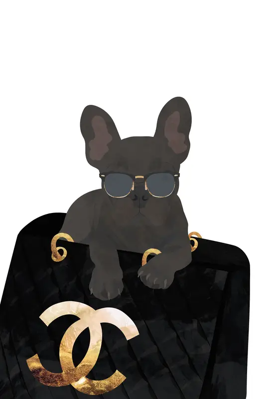 Achat Immédiat Chic hond: Franse bulldog met designerflair posters & art prints door Sarah Manovski – Premium Poster – 50×70