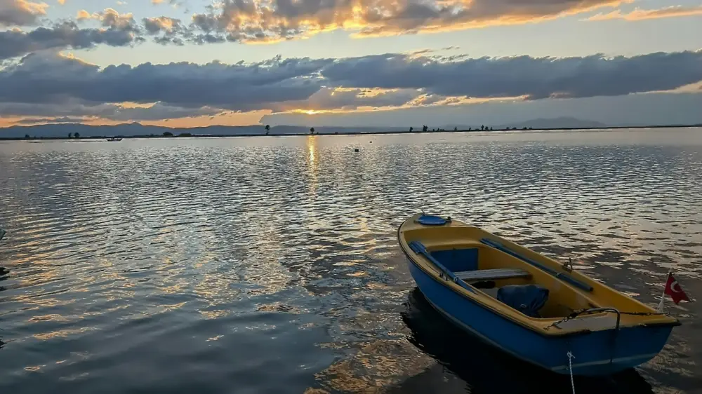 Achat Immédiat Enity at Sunset: Een kalme boot op kalm water posters & art prints door Deniz Valder – Premium Poster – 50×70