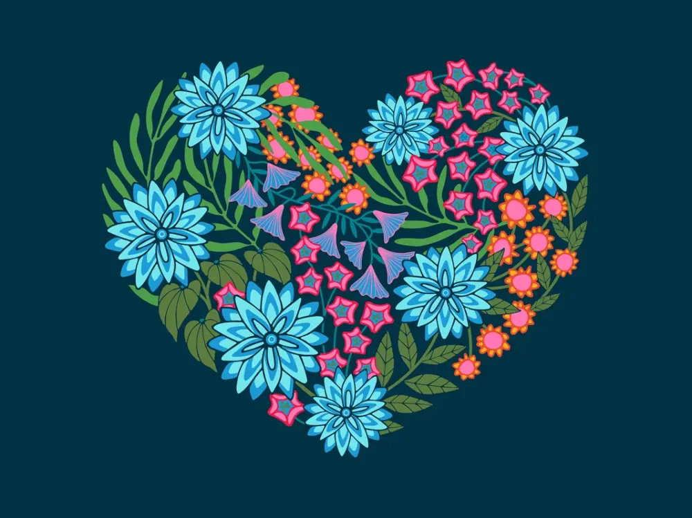 Achat Immédiat GEBLOEMD HART Bloemen Blauw posters & art prints door Jackie Tahara – Premium Poster – 50×70