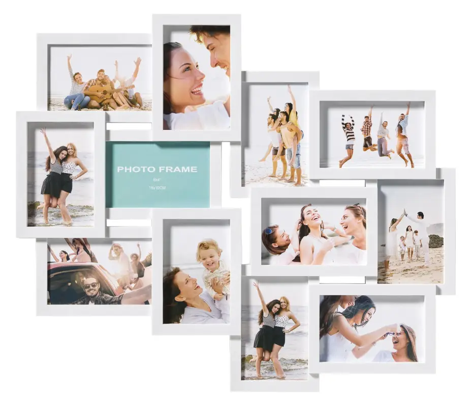 Stijlvolle collagelijst met plek voor 12 foto’s van 10×15 centimeter, waarmee je eenvoudig een aantal foto’s op een mooie manier kunt arrangeren. Het design van de lijst zorgt ervoor dat de posterwand eenvoudig te matchen is met de overige inrichting en zal een mooie toevoeging in alle kamers zijn. Kies je allerbeste vakantiefoto’s uit en maak een prachtig collage van fantastische herinneringen. De lijst is ook een mooi cadeau voor je opa’s en oma’s, die de kleinkinderen graag wat vaker willen zien.