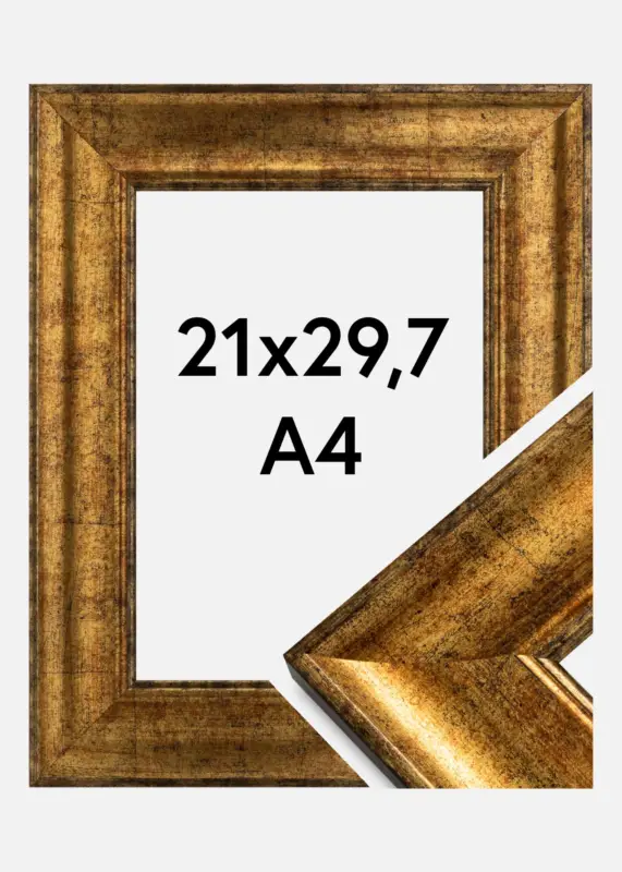 Saltsjöbaden Goud is verkrijgbaar in verschillende afmetingen, en deze fotolijst is geschikt voor foto’s van 21×29,7 cm (A4).