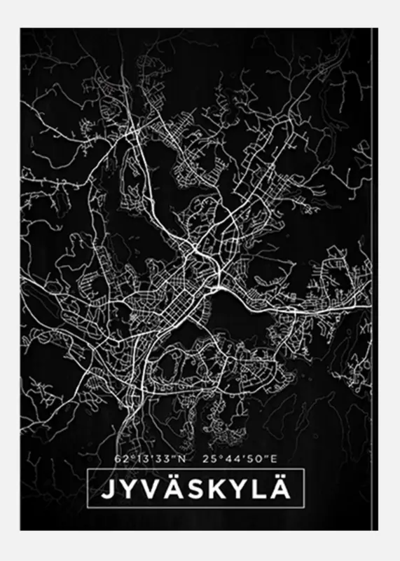 Achetez Aujourd’hui Map – Jyväskylä – Black Canvasprint (30×40 cm)
