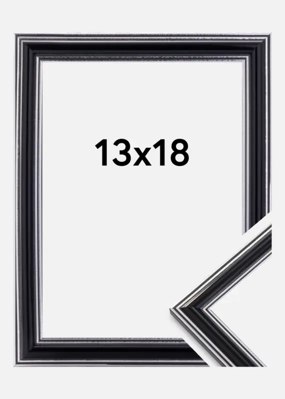 Tango Zwart heeft, met zijn glanzende lijst in een combinatie van zwart en zilver, een frivool design. Perfect wanneer je op zoek bent naar een lijst die een gevoel van glamour en frivoliteit uitstraalt.