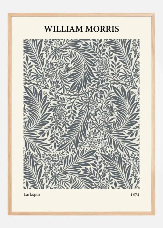 Deze William Morris-poster uit 1874, getiteld “Larkspur”, benadrukt de verfijnde details en organische schoonheid die kenmerkend zijn voor Morris’ ontwerpen. Het motief, vol met intrigerende bloemen en loofwerk, straalt een tijdloze elegantie uit die zowel traditionele als hedendaagse ruimtes complementeert. Het ontwerp is een klassieke representatie van de waarden van de Arts and Crafts-beweging, waar handgemaakte kwaliteit en natuurthema’s centraal staan.