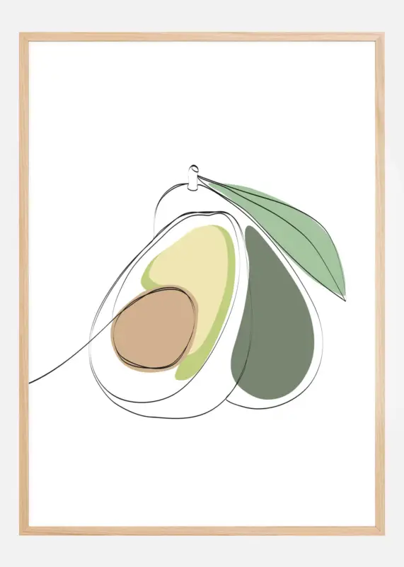 Een abstracte poster van een avocado op een schone witte achtergrond. Het abstracte ontwerp is gemaakt met eenvoudige lijnen en eenvoudige kleurblokken om dit verrukkelijke en onberispelijke ontwerp te creëren. Geniet van dit abstracte beeld. De poster is een perfecte aanvulling met een vleugje eigenzinnigheid in een eenvoudige en minimalistische keuken.