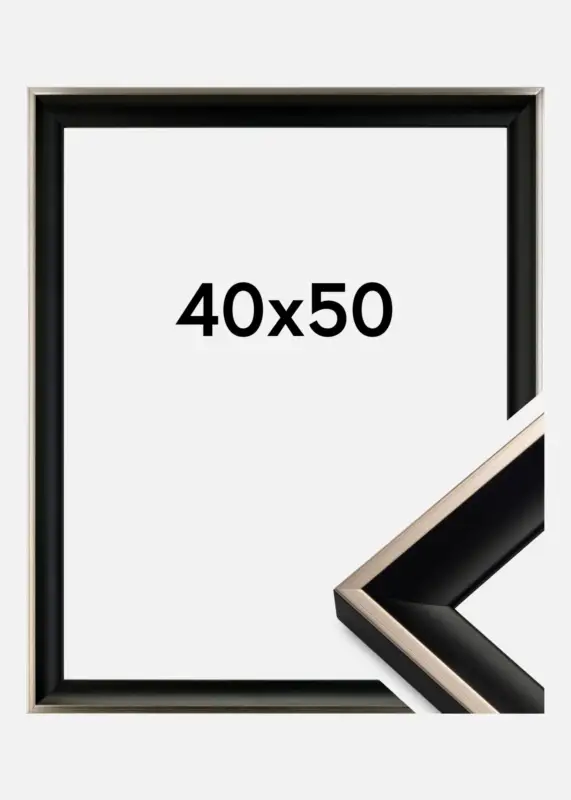 Voor degenen die op zoek zijn naar een brede lijst (34 mm) is Öjaren 32C van Galleri1 een perfecte keuze. De lijst heeft een gewelfd profiel in zwart, gecombineerd met een dunne zilveren buitenrand, waardoor Öjaren 32C een exclusieve indruk geeft en opvalt.
