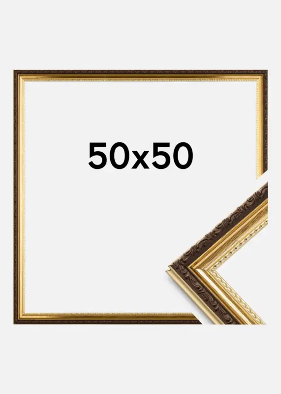 Op zoek naar een mooi gedecoreerde lijst in een oudere stijl? Abisko Acrylglas Goud is een massieve gouden fotolijst met prachtige stijlvolle ornamenten. Het frame is 25 mm breed en heeft een glanzende gouden kleur met een sierlijke bruine rand in het midden. Het gouden gedeelte is elegant, met een golvend patroon dichtbij het glas.