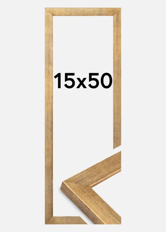 Deze stijlvolle fotolijst in goud is perfect om je favoriete motieven te laten opvallen. Met een formaat van 15×50 cm is hij ideaal voor langwerpige foto’s of kunstwerken. De fotolijst is gemaakt van hout en heeft een elegante, glanzend afwerking die een moderne en minimalistische uitstraling geeft. De 20 mm brede lijst en de 13 mm diepe vorm dragen bij aan het verfijnde design.
