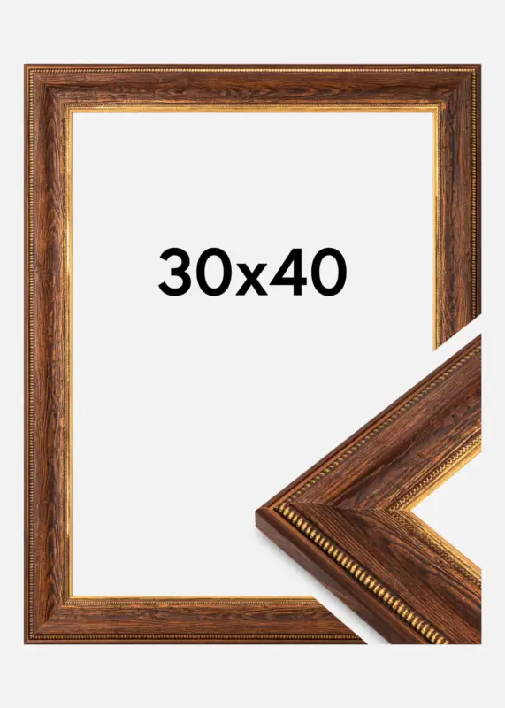 Dit elegante fotolijstje in de grootte 30×40 cm is een perfecte combinatie van rustieke charme en klassieke elegantie. Gemaakt van hoogwaardig hout, heeft de lijst een diepe en warme bruine kleur die de natuurlijke structuur van het hout benadrukt. De decoratieve gouden details langs de binnenrand geven een verfijnde toets, waardoor deze schilderijlijst ideaal is voor traditionele en vintage geïnspireerde interieurs.