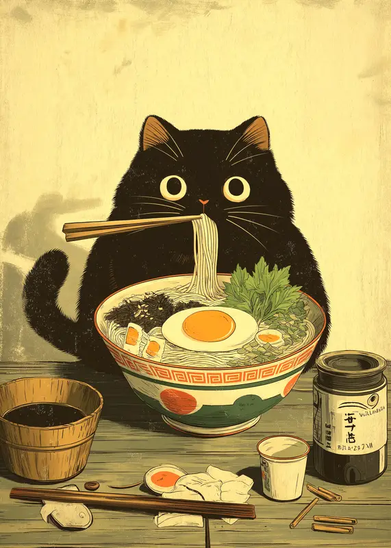 Expédition Rapide Whiskers and Noodles: Een Culinair Kattenavontuur posters & art prints door Stellar Creative – Premium Poster – 50×70