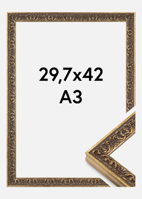 Deze elegante fotolijst in de maat 29,7×42 cm is een perfecte combinatie van klassiek design en moderne functionaliteit. Gemaakt in Italië, biedt deze schilderijlijst een antiek-geïnspireerde stijl met prachtig gedetailleerd ornament in een grijzig tint met gouden accenten. Deze unieke combinatie van kleuren geeft de lijst een vintage gevoel met een verfijnd patina-effect, waardoor het ideaal is om een tijdloze sfeer in uw huis te creëren.
