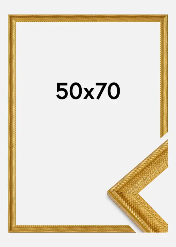 Dit elegante fotolijstje in goud is een perfecte combinatie van klassiek design en moderne functionaliteit. Met zijn gedetailleerde patronen langs de randen en een glanzende afwerking, geeft het een luxe gevoel dat elk kunstwerk of foto verrijkt. Het frame is gemaakt van composietmateriaal, wat het zowel sterk als licht maakt. Het is ontworpen om afbeeldingen van formaat 50×70 cm te passen, wat het ideaal maakt voor grotere foto’s of posters.
