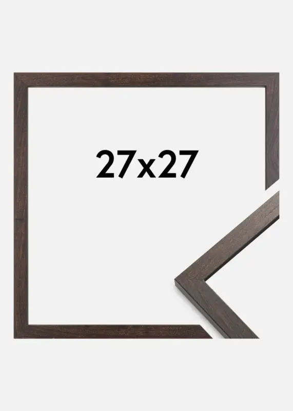 Deze mooie fotolijst met walnootkleurige afwerking is een perfecte combinatie van stijl en functionaliteit. Met een formaat van 27×27 cm is hij ideaal om je favoriete foto’s of kunstwerken te accentueren. Het donkerbruine, matte oppervlak geeft een warme en natuurlijke uitstraling die past in zowel moderne als klassieke interieurs. Het minimalistische ontwerp met een 15 mm brede lijst en een diepte van 15 mm zorgt ervoor dat het motief echt centraal staat.