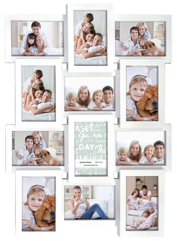 Verzamel een aantal van je mooiste herinneringen en plaats ze samen in deze lijst! Deze collagelijst heeft maar liefst ruimte voor 12 afbeeldingen in formaat in 10×15 cm in zowel staand als liggend formaat. De buitenafmetingen van het frame zijn 46×60 cm en heeft wandbevestiging. Het stijlvolle ontwerp van de fotolijst geeft glans aan je afbeeldingen en het kan perfect worden gecombineerd met andere wanddecoratie. De verschillende lijsten in dit collageframe zitten op verschillende dieptes, waardoor er een 3D-gevoel ontstaat en deze collagefotolijst een eyecather in je huis laat worden.