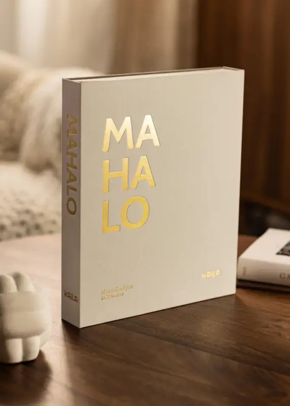 Met deze Coffee Table Book krijg je zowel een praktisch fotoalbum als een mooie interieurdetail in één pakket! Het album is ontworpen als een exclusieve doos, met een omslag in grijze stof en een goudkleurige opdruk die luidt “MAHALO”. In de linkerhoek van het album staat de ondertitel “Means thank you in Hawaiian”. De klassieke uitdrukking maakt dat dit Coffee Table Album perfect past in de boekenkast of op de salontafel.
