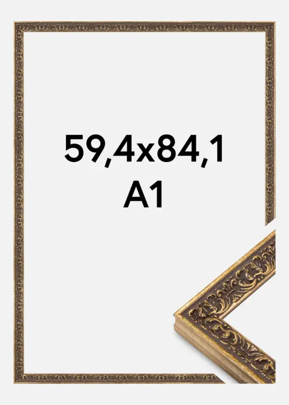 Deze elegante fotolijst in de maat 59,4×84,1 cm is een perfecte combinatie van klassiek design en moderne functionaliteit. Met zijn antiek geïnspireerde stijl en mooi gedetailleerde ornamenten in een grijze tint met gouden accenten, geeft hij een vintage gevoel dat elke kamer verrijkt. Deze schilderijlijst is ideaal om een verfijnde sfeer in je huis te creëren.