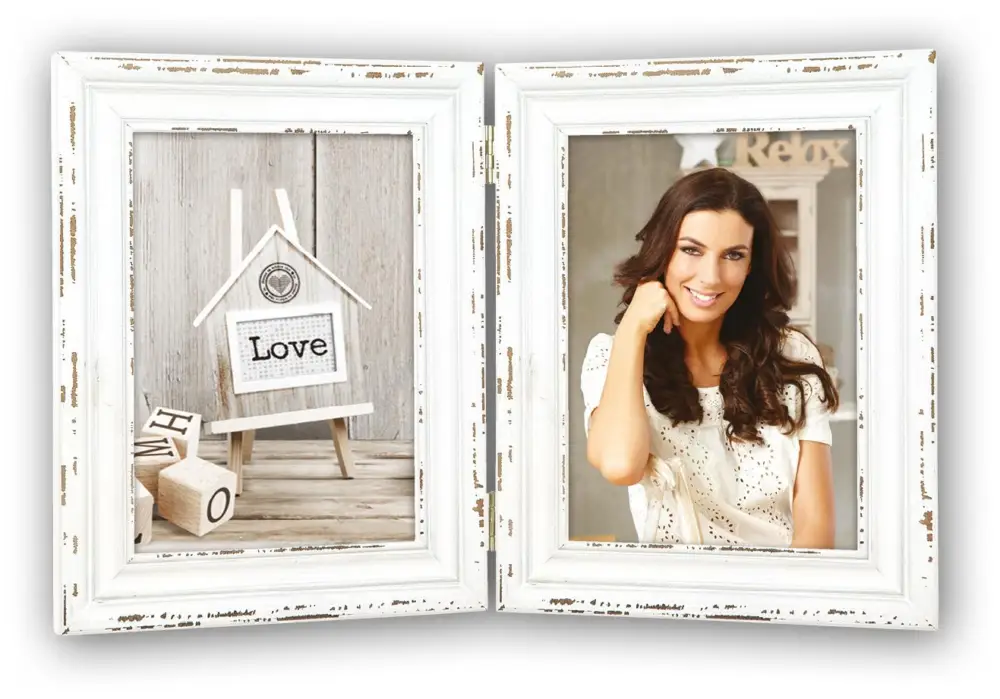Hou je van oude en karakteristieke spullen dan vind je deze mooie vouwlijst gegarandeerd leuk! De lijst bestaat uit 2 klassieke fotolijsten met versleten details, die aan elkaar vastzitten met 2 zilverkleurige scharnieren. Plaats je favoriete afbeelding erin en voeg een vleugje huiselijkheid toe op je bureau of nachtkastje.