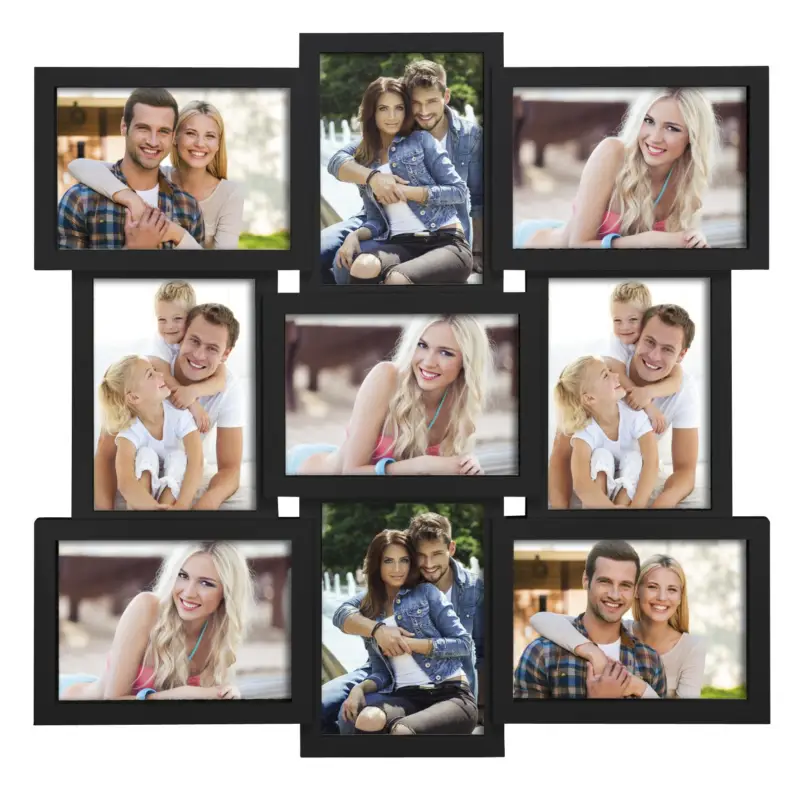 Heb je thuis een muur die er een beetje leeg en eenzaam uitziet? Geef deze een oppeppermet een mooie collagelijst vol met persoonlijke foto’s! Deze stijlvolle variant heeft ruimte voor 4 staande en 5 liggende foto’s van 13×18 cm.