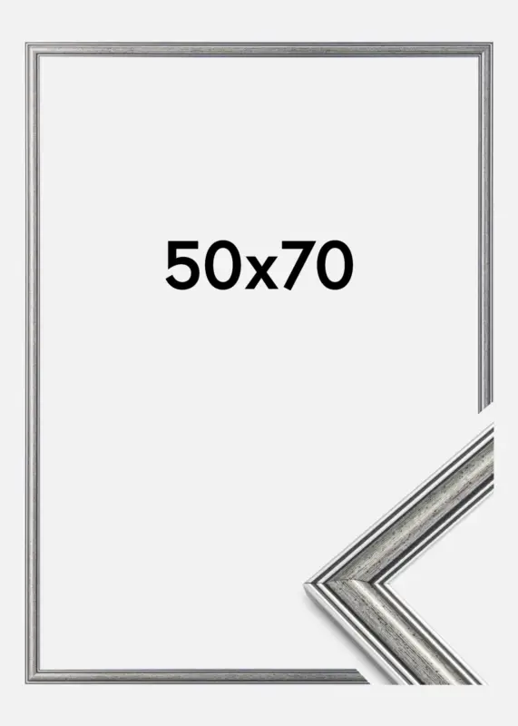 Frigg is eenzilveren lijst met zwarte lijnen en een zwartgespikkelde inslag. Past uitstekend wanneer je zoekt naar een brede klassieke zilveren lijst die goed past bij verschillende soorten foto’s en ruimtes.