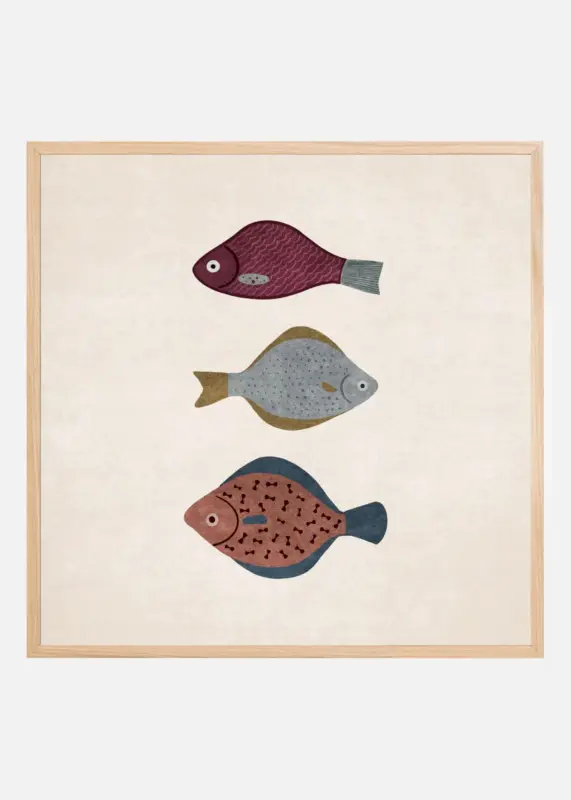 Deze trendy poster biedt een charmante verzameling van drie gestileerde vissen in verschillende kleuren en vormen. Het motief zorgt voor een harmonische en rustige sfeer, perfect voor thuis of op kantoor. Elke vis heeft een uniek ontwerp, waardoor deze print een interessant gespreksonderwerp en een visueel hoogtepunt in de ruimte wordt. Met zijn gedetailleerde patronen en gedempte tinten past dit motief uitstekend in een modern interieur.