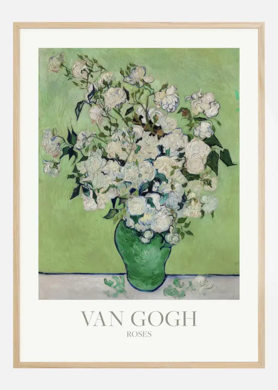 Deze heldere en levendige poster toont Vincent van Goghs “Roses”, een schilderij dat een boeket van prachtige rozen in een felgroene vaas illustreert. Van Goghs kenmerkende stijl, met dikke, expressieve penseelstreken en levendige kleuren, benadrukt de delicate schoonheid van de bloemen tegen een contrasterende achtergrond. Het is een werk dat zowel passie als een diepgaande waardering voor de schoonheid van de natuur uitstraalt.