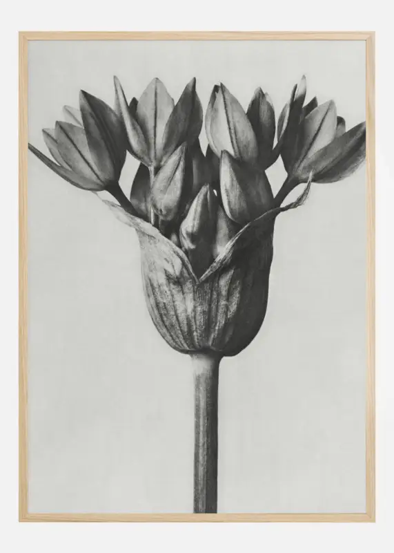 Een prachtige zwart-wit poster van een bloem waaruit vele kleinere bloemen tevoorschijn komen. Het beeldt met zijn elegantie en eenvoud een symbool van geluk uit. De licht- en schaduweffecten zorgen voor een prachtige beeld op een eenvoudige grijze achtergrond. Een geschikte poster voor een ruime omgeving zoals de woonkamer of de slaapkamer.