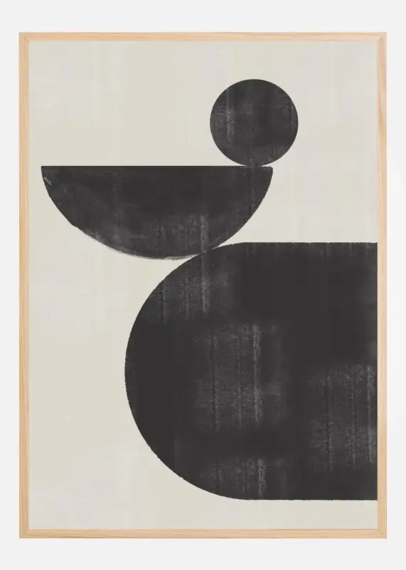 Deze stijlvolle poster combineert minimalisme met een elegant ontwerp en creëert zo een kunstwerk dat zowel tijdloos als modern is. Het motief bestaat uit geometrische vormen in Zwart die mooi afsteken tegen een zachte, lichte achtergrond. Deze combinatie geeft de print een verfijnd contrast dat perfect past in elk interieur.