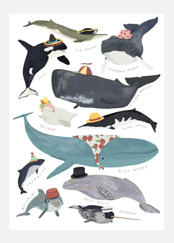 Whales In Hats Canvasprint (30×40 cm) Réduction