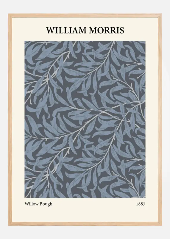 Deze poster is een prachtige weergave van William Morris’ ontwerp “Willow Bough” uit 1887, die de sierlijke vorm van wilgbladeren weergeeft in een verfijnd palet van blauwgrijze tinten. Dit patroon is een uitstekend voorbeeld van Morris’ vermogen om esthetiek te combineren met natuurelementen, waardoor een kalme en uitnodigende indruk ontstaat die in vele interieurstijlen past.