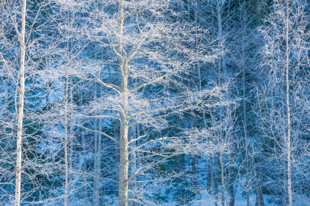 Winter’s Embrace: een berijpte bosscène posters & art prints door Gavin McCrory – Premium Poster – 50×70 Petit Prix