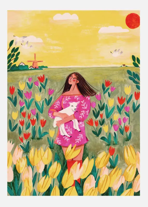 Woman In Spring Tulip Field Canvasprint (30×40 cm) Réduction